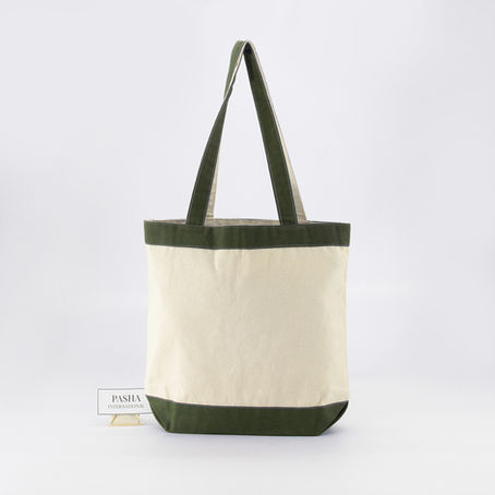 100% Cotton Canvas Bag with Coloured Bottom Gusset, Handle and Top Hem Band.